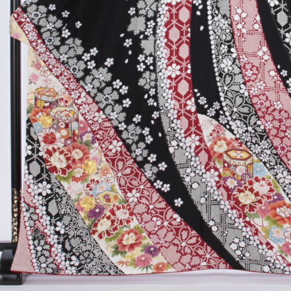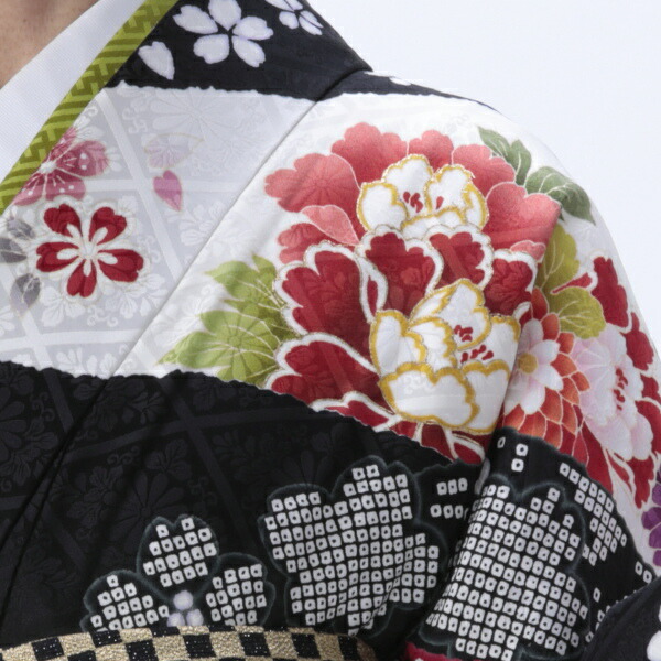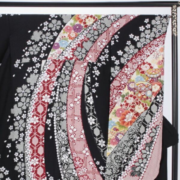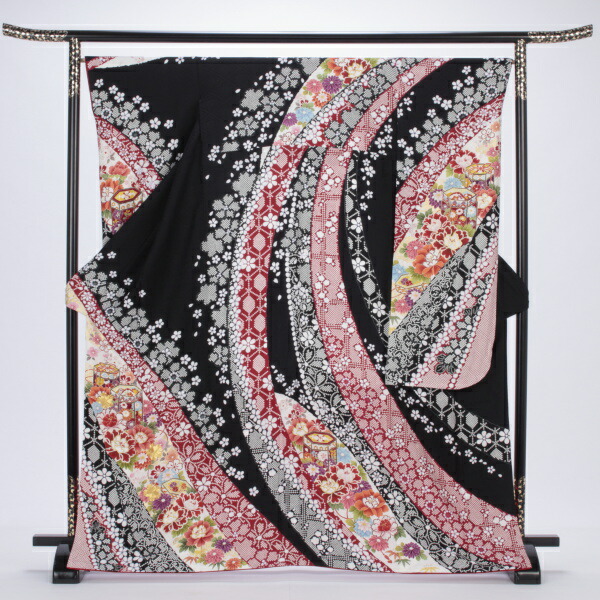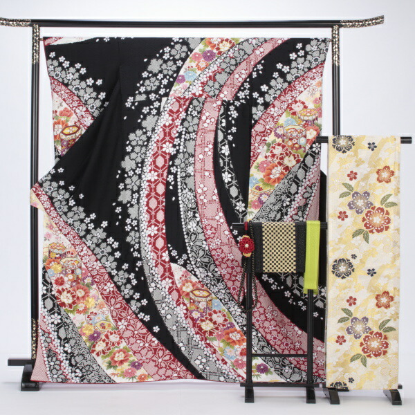 【成人式】振袖 レンタル フルセット Mサイズ 着物 【黒系】【f0522432r2】
