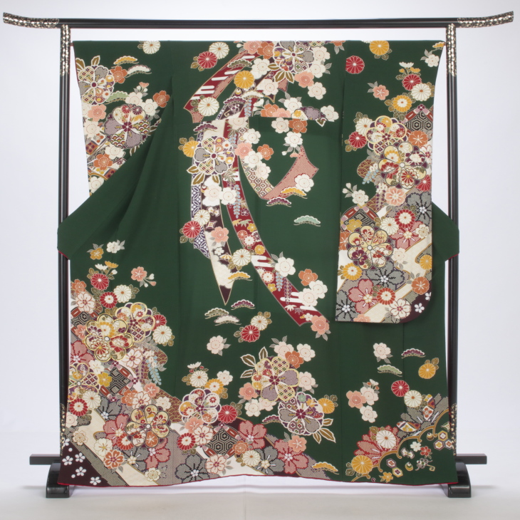 振袖 購入 フルセット Mサイズ 成人式 着物 【グリーン系】【中古】【状態:A】【f0721048】