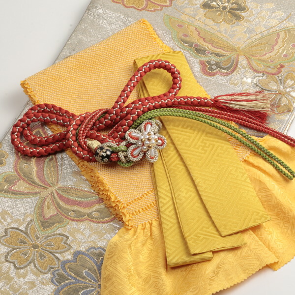 帯揚げは相性の良い黄色で