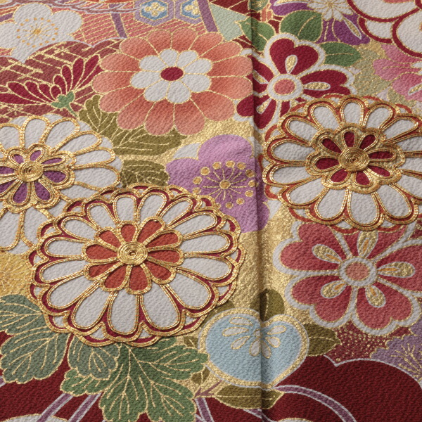 振袖 購入 フルセット Lサイズ ほぼ新品 成人式 着物 【赤・ワイン系】【中古】【状態:S】【f8022338】